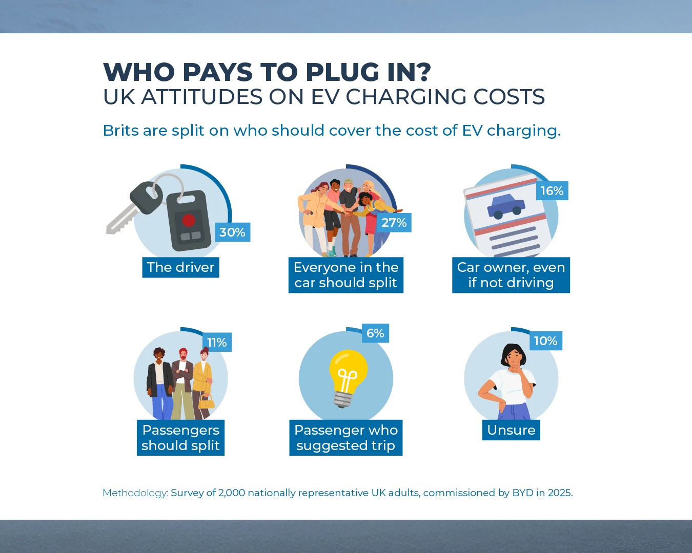 When asked who should cover the cost of EV charging during a shared trip, Brits gave a surprisingly mixed response: